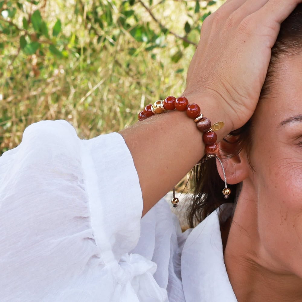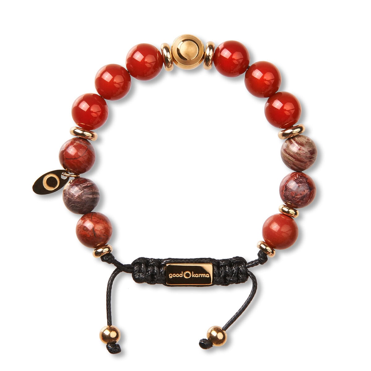 Focus – bei diesem Good Karma Bracelet ist der Name Programm. Ihr kraftvolles Rot wird die Blicke auf dich ziehen und dein inneres Leuchten erstrahlen lassen! Good Karma Focus besteht aus dem lebhaften Australischer Serpentin und dem tiefgründigen Karneol. Sie bündeln ihre Kraft und schenken dir wertfreie Selbstwahrnehmung, Frohsinn, Präsenz im Hier und Jetzt, fokussierte Konzentration und innere Ausgeglichenheit. Good Karma Pulsstein: Roter Jaspis. Die Abbildung zeigt die Größe 16cm.