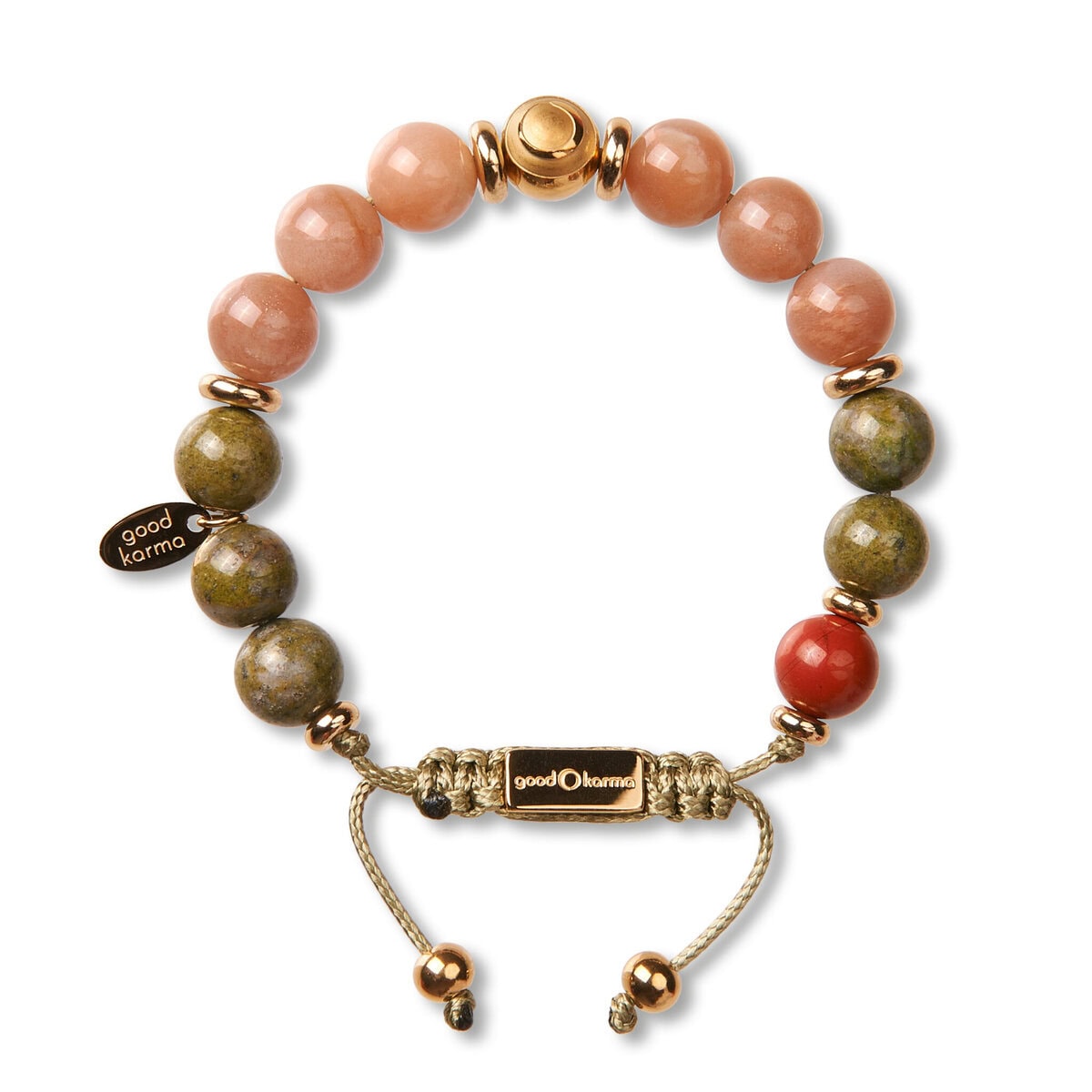 Alle Steinperlen in den Good Karma Bracelet Kollektionen sind natürliche Edelsteine, die sich bisweilen in ihrem Farbspiel deutlich unterscheiden. Kein Armband ist wie das andere, jedes ist ein handgefertigtes Unikat. Unterschiede in den Farben der einzelnen Edelsteinperlen zu Produktabbildungen im Shop stellen keinen Reklamationsgrund dar.